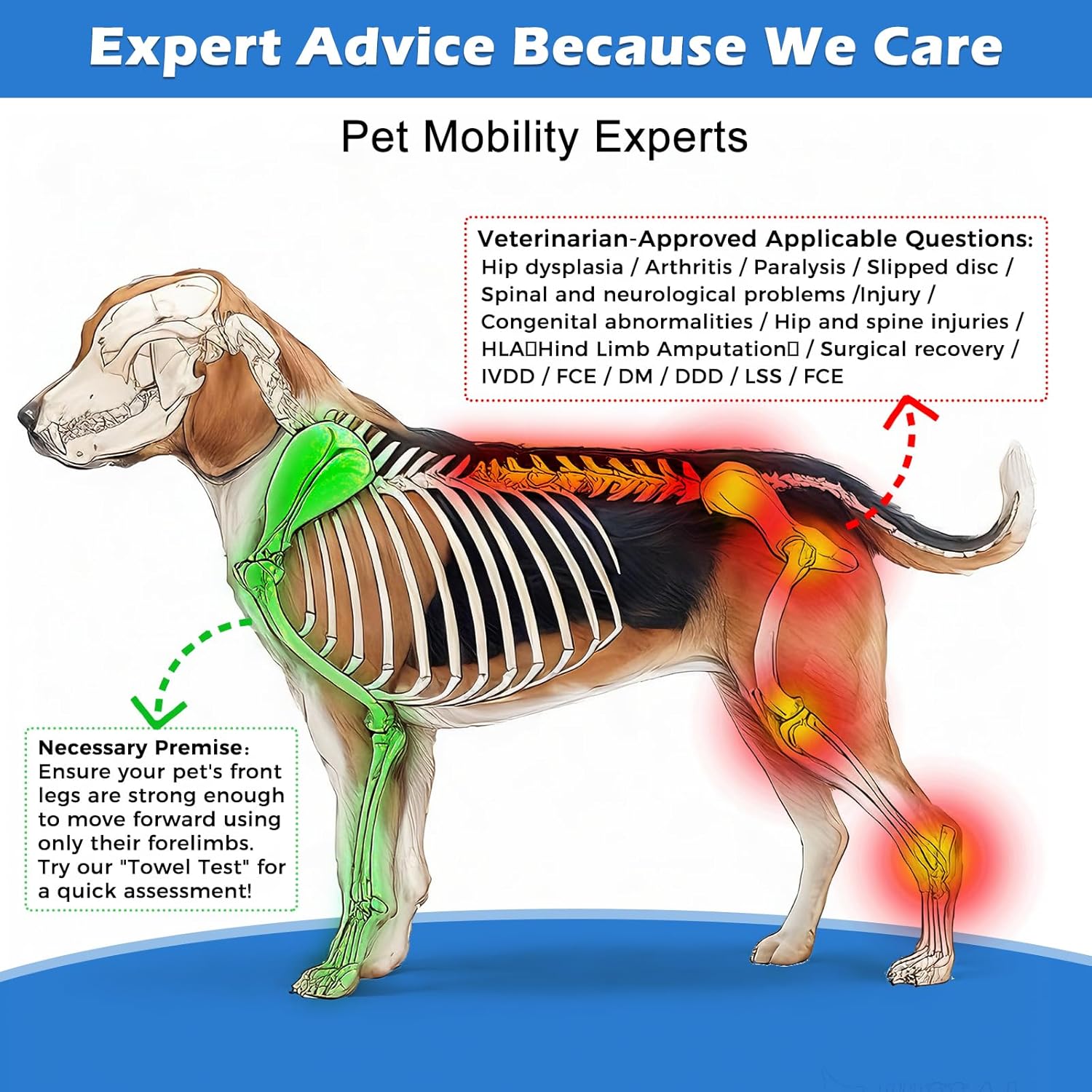 • Spinal Support & Adjustable Fit The reinforced abdominal strap redistributes weight to reduce pressure on the spine and hips, making it ideal for pets with conditions like degenerative myelopathy (DM), IVDD, or paralysis. Plus, the adjustable length, width, and height ensure a custom fit, easily adapting to your pet’s body shape for maximum comfort and mobility.